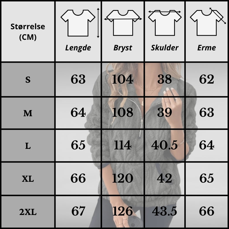 Myke ribbkanter og lett volum faller pent langs silhuetten din—komfortabelt, ikke tungt. Matcher enkelt med leggings, denim eller joggebukser.