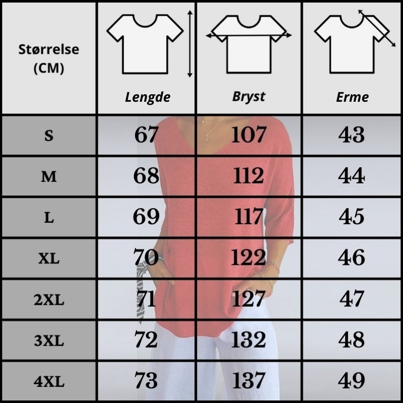 A. LÆNGDE: Mål fra det høyeste punkt til nederste kant av plagget.