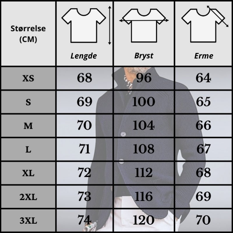 Nøye målte størrelser for en perfekt passform.