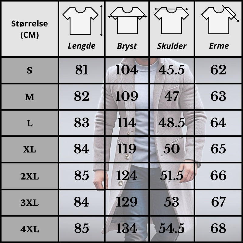 Med Kristian™ vinterfrakken skiller du deg ut, selv på de kaldeste dagene. Denne sofistikerte frakken er designet med sans for detaljer og tilfører et preg av klasse til garderoben din. Enten du er på vei til et forretningsmøte eller en avslappet vintertur, passer denne frakken til enhver anledning.