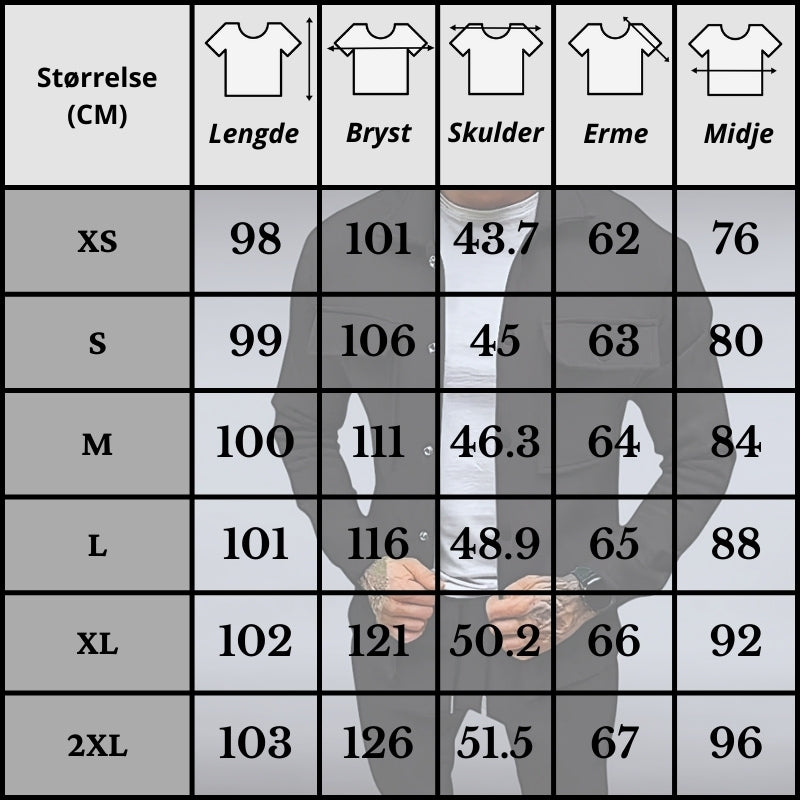 Nøye målte størrelser for en perfekt passform.