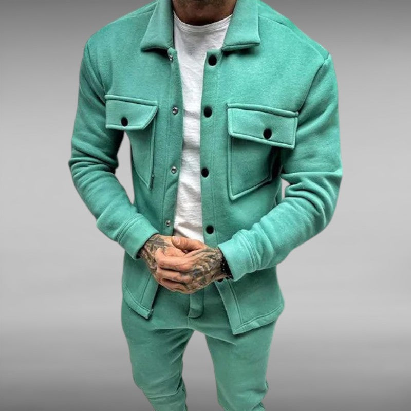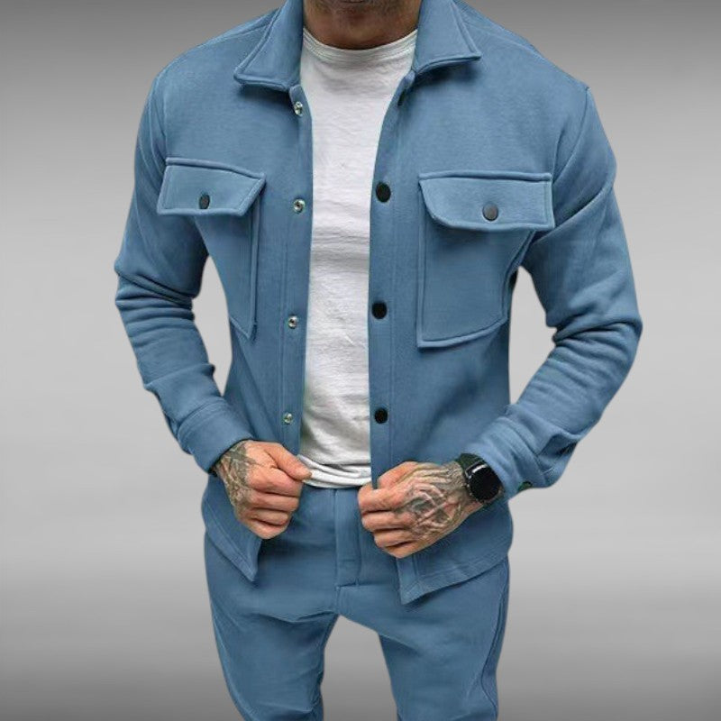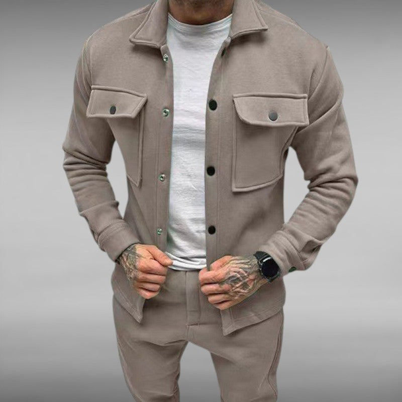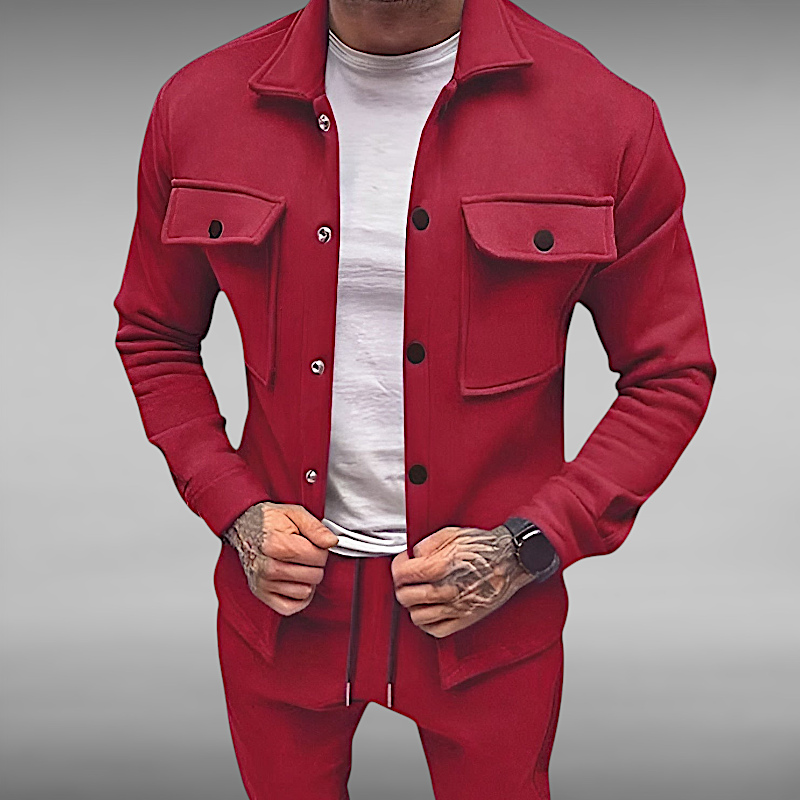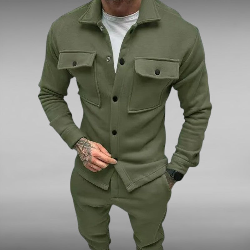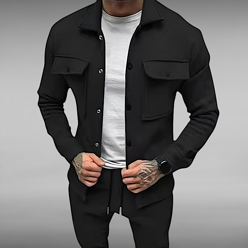 Med romslige brystlommer og trykknapplukking kombinerer denne dressen funksjonalitet med stil.
