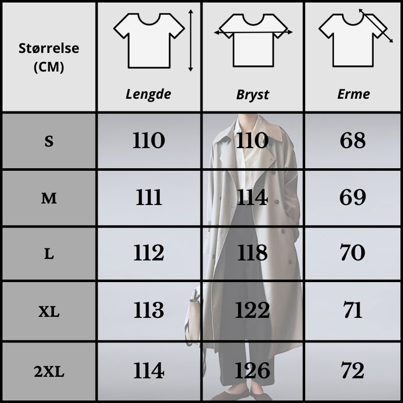 Tenk deg dette: en frisk bris, men du forblir både komfortabel og stilfull. Med Ragnhild™ får du den perfekte balansen mellom eleganse og funksjonalitet. Denne klassiske vindjakken er designet for kvinner som verdsetter mote uten å gå på kompromiss med komfort. Enten du går en tur langs kysten eller er på shopping i byen – Ragnhild™ passer til enhver anledning.